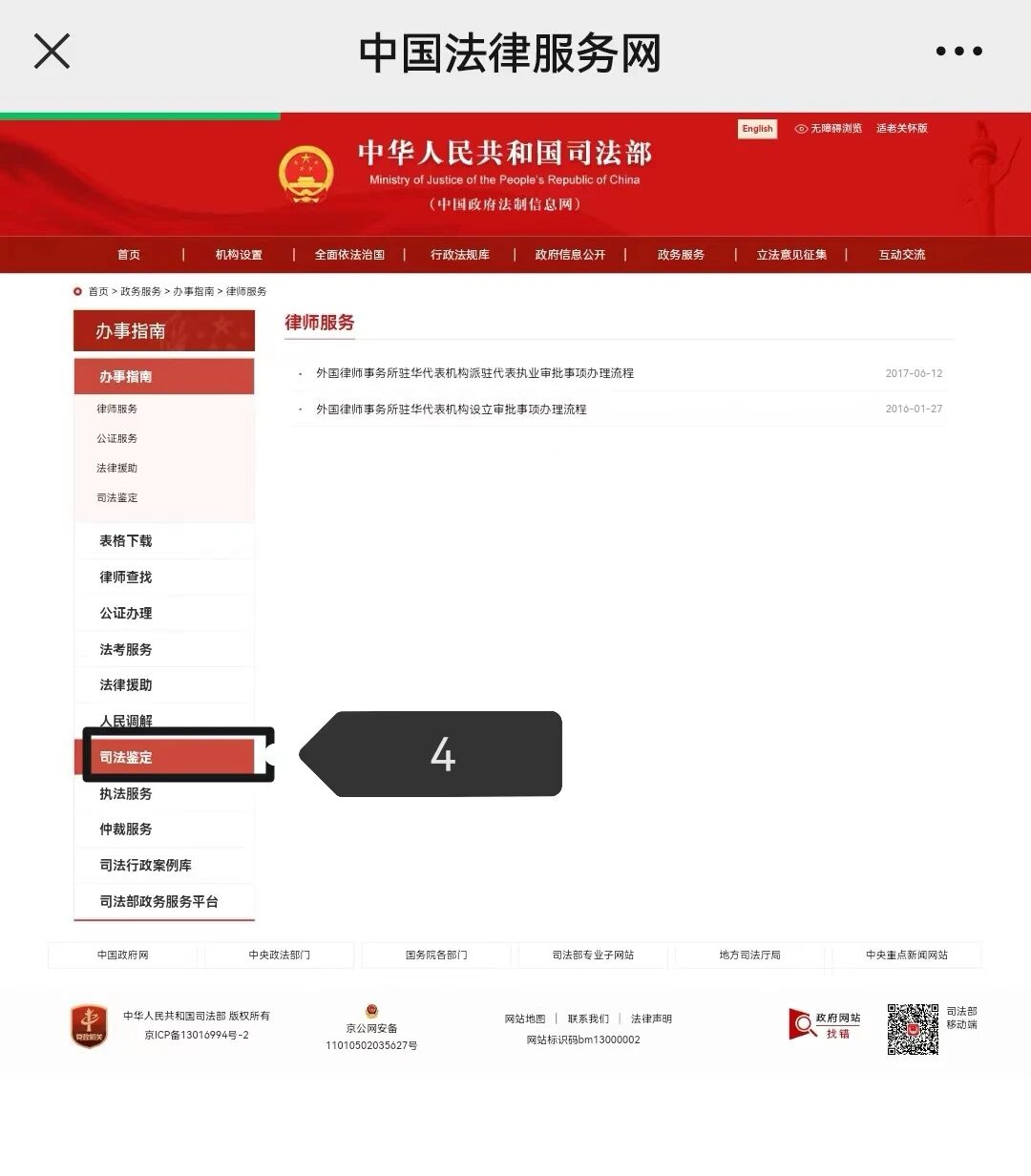 在菜单栏点击【政务服务】选择【司法鉴定】进入【国家司法鉴定名录网】