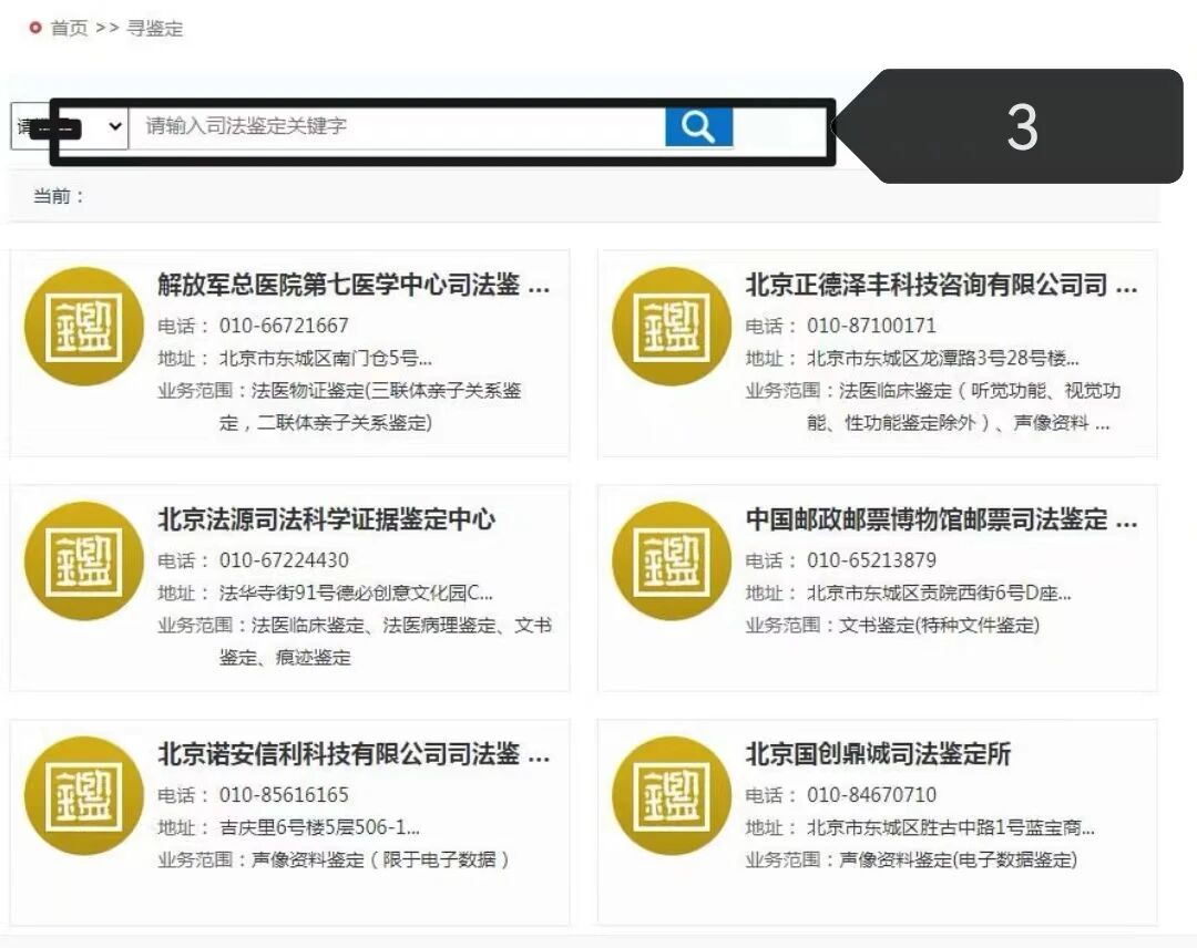进入【人员机构查询】,在搜索框输入相关信息,选择好省份与城市,即可查询亲子鉴定机构相关资质