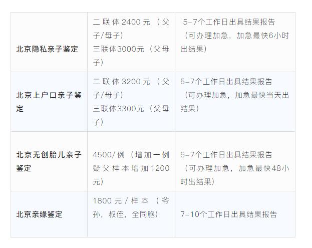 北京隐私亲子鉴定:每增加一例鉴定样本增加1000元